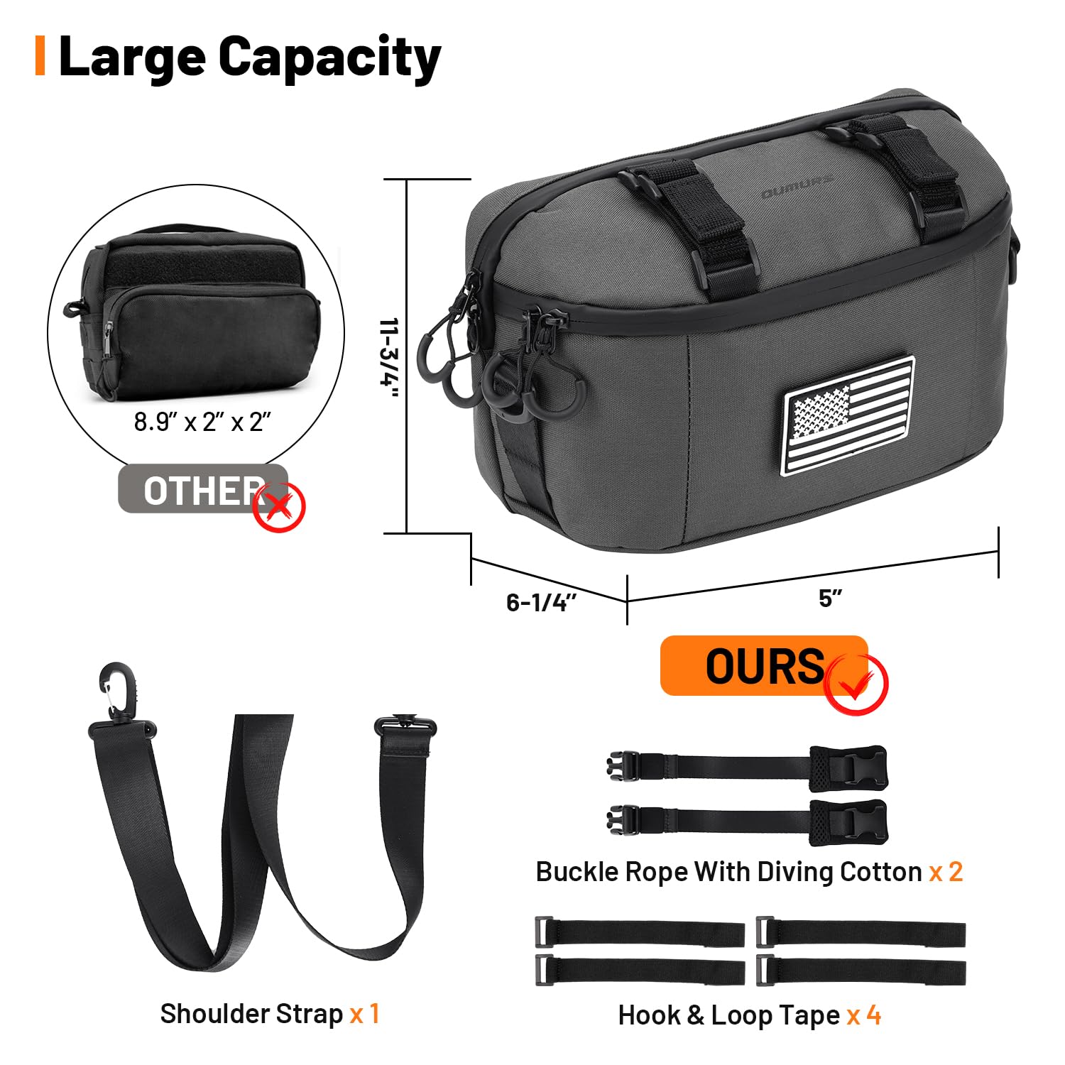 2. Easy Position Adjustment: Equipped with MOLLE webbing for securing in various positions on the motorcycle.