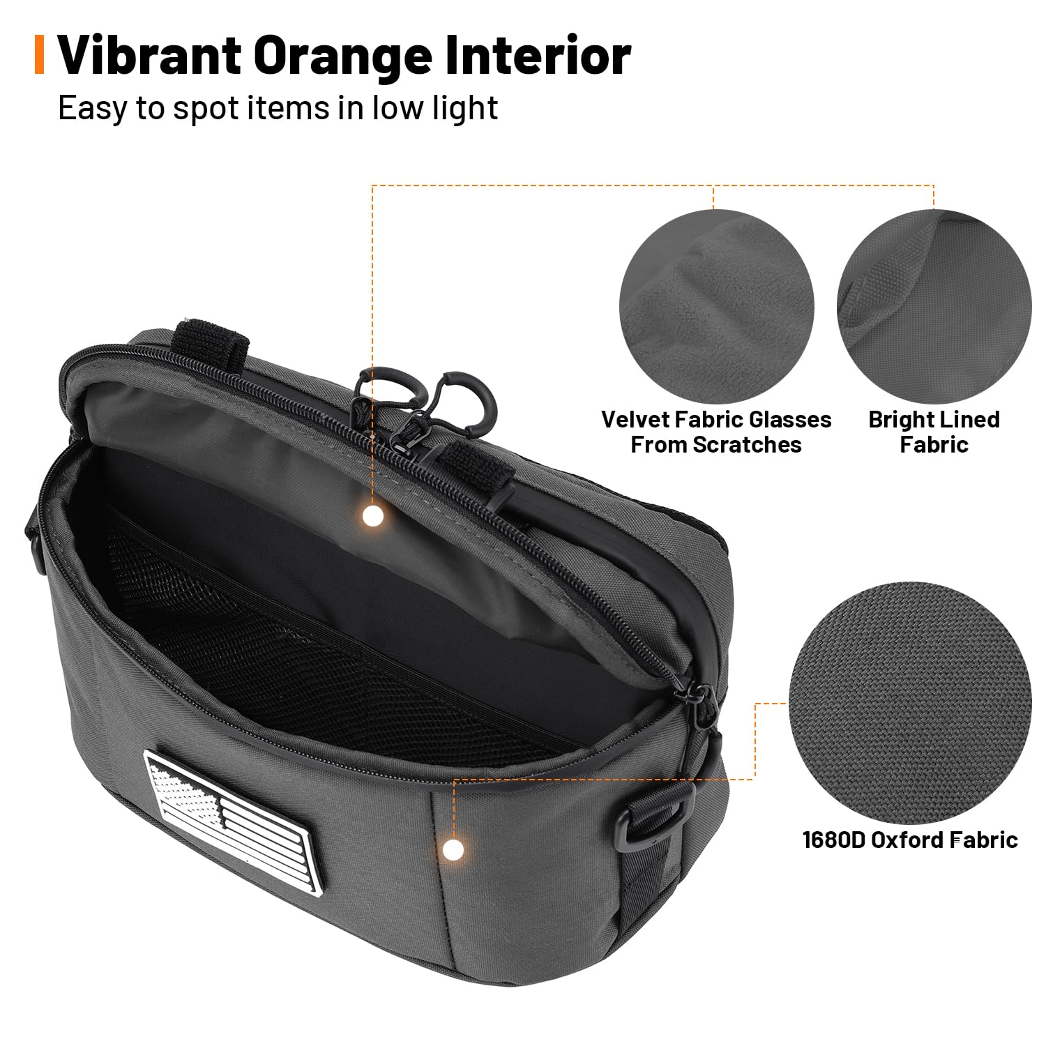 3. Convenient Organization: Separate compartments for different items, including tools, phones, and sunglasses.