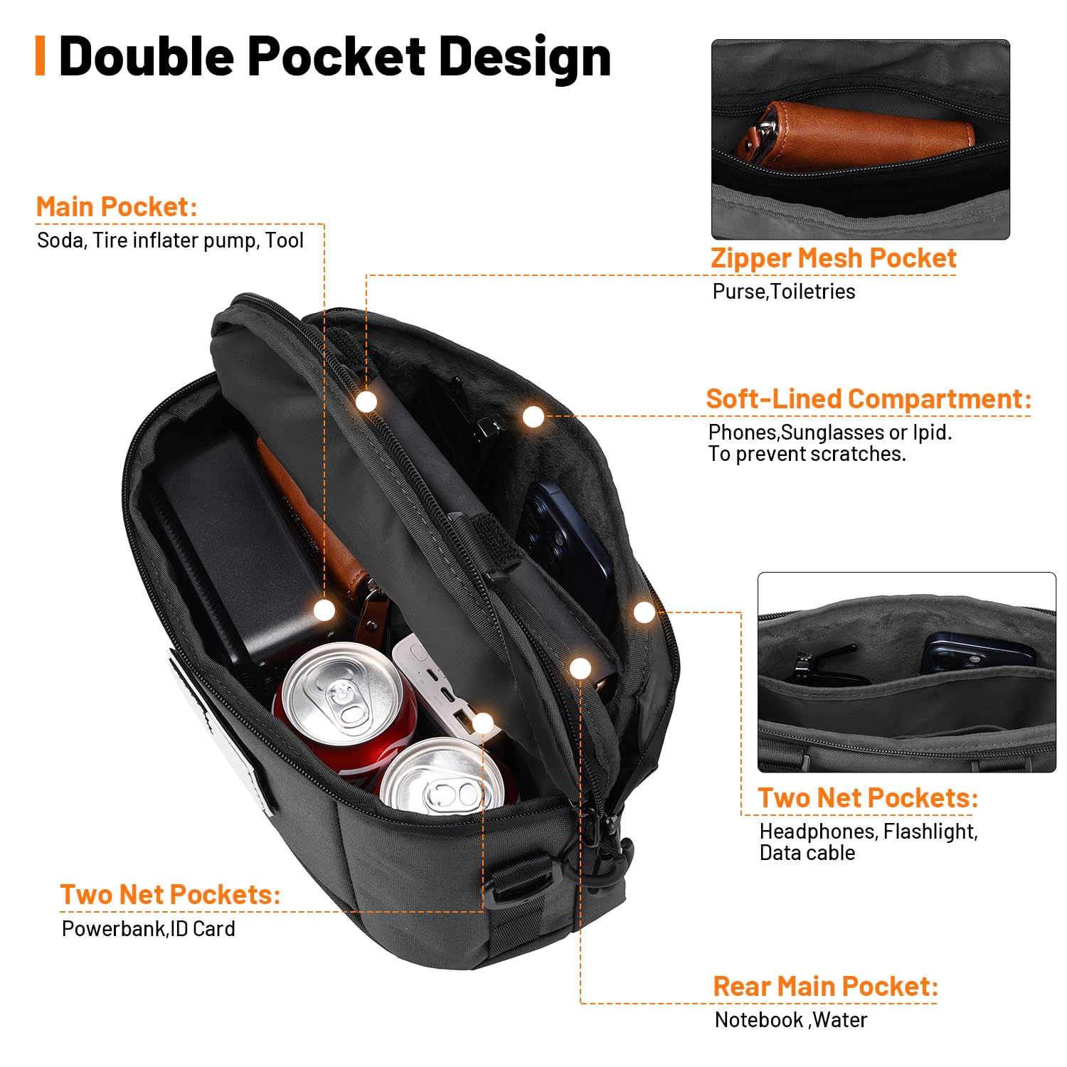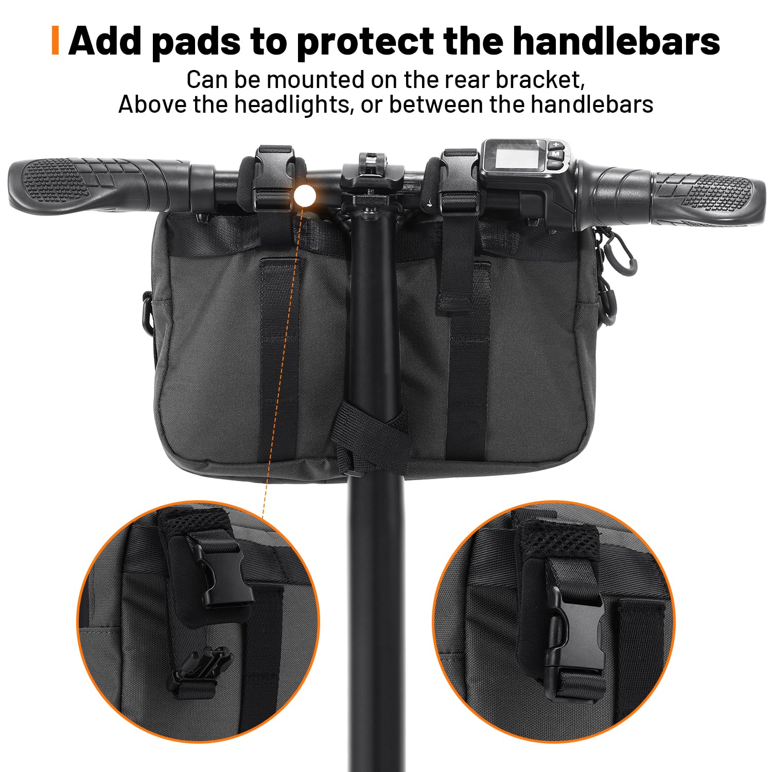 1. Versatile Design: This handlebar bag can be used in multiple ways - on the handlebars, frame, or as a crossbody bag while riding.