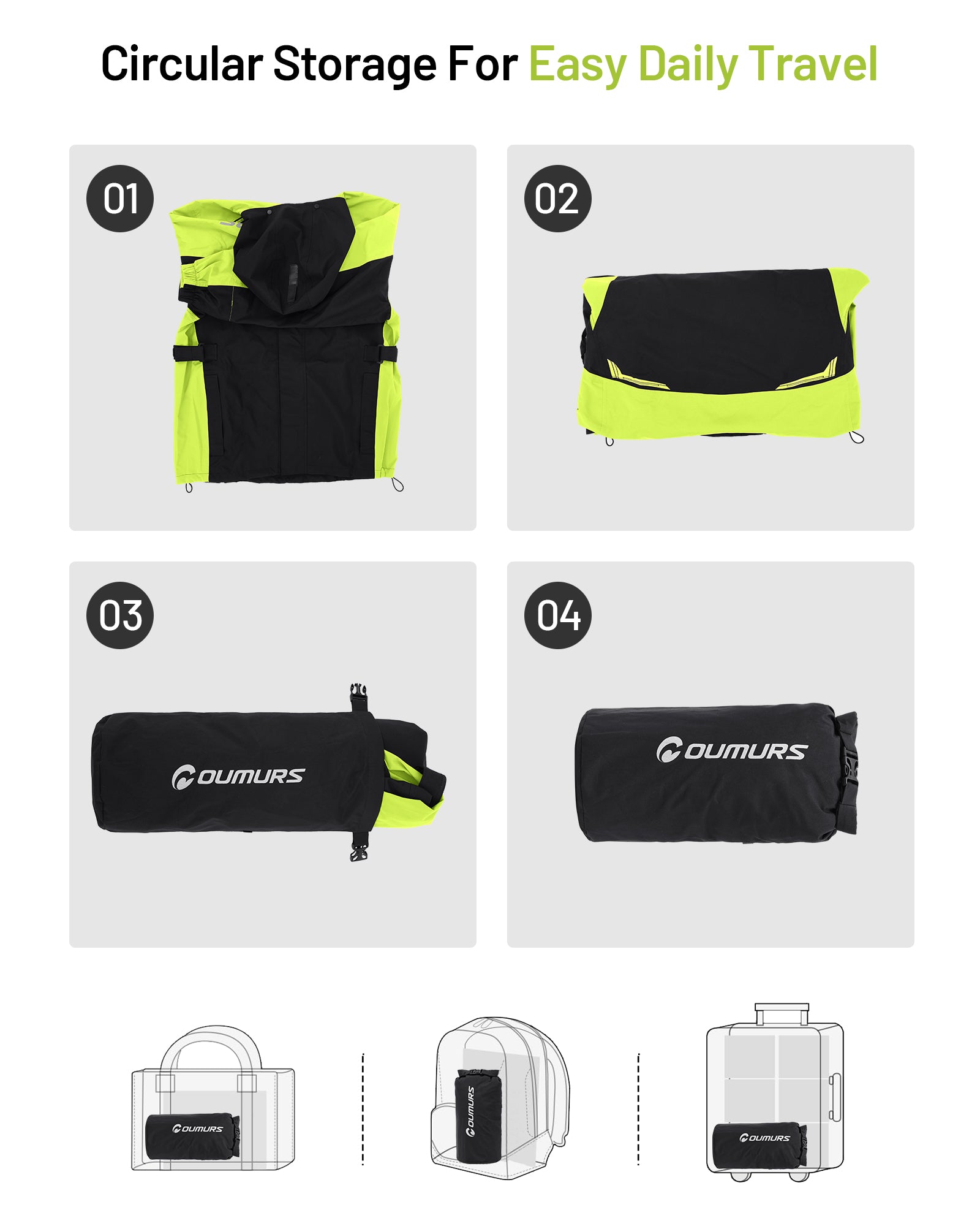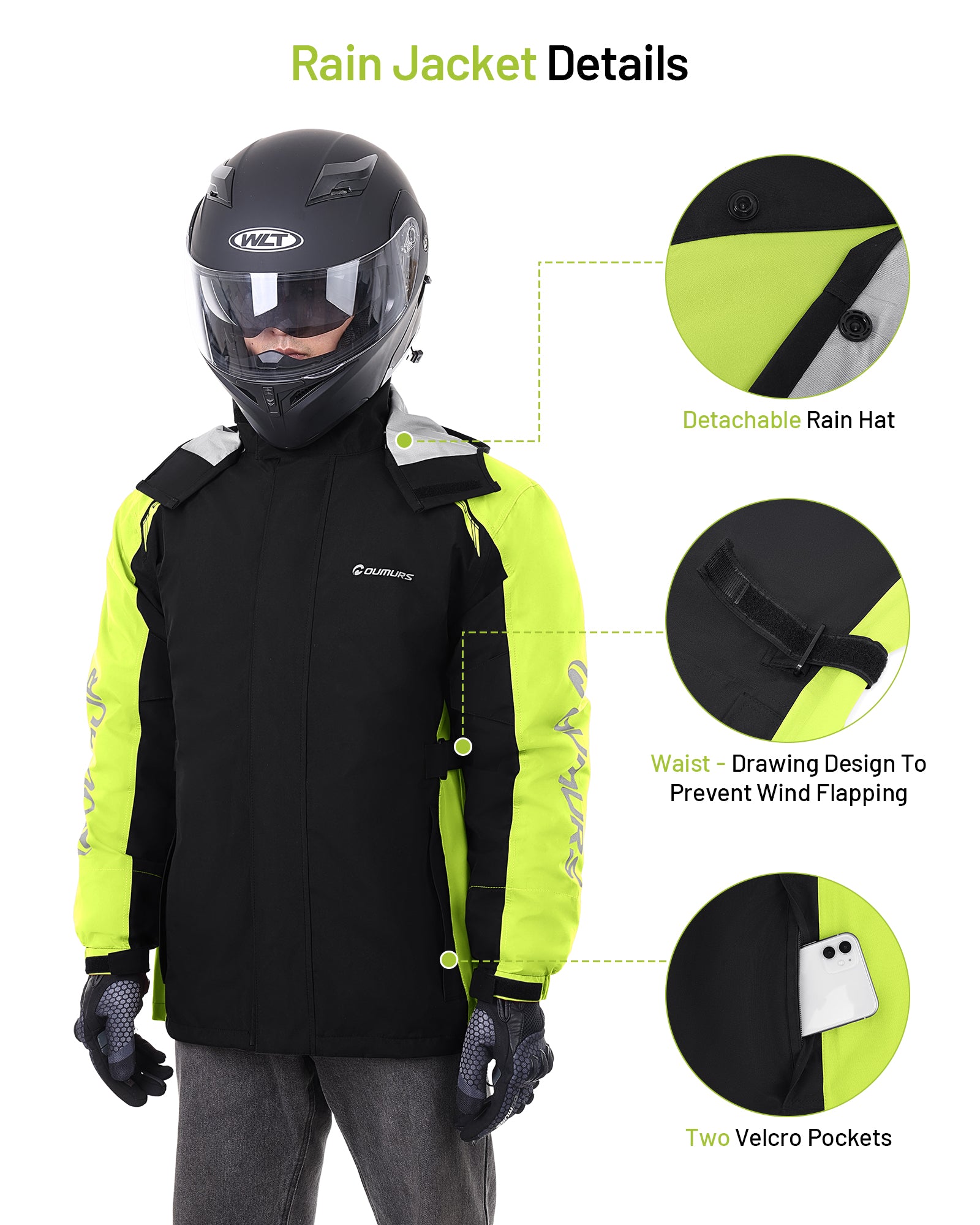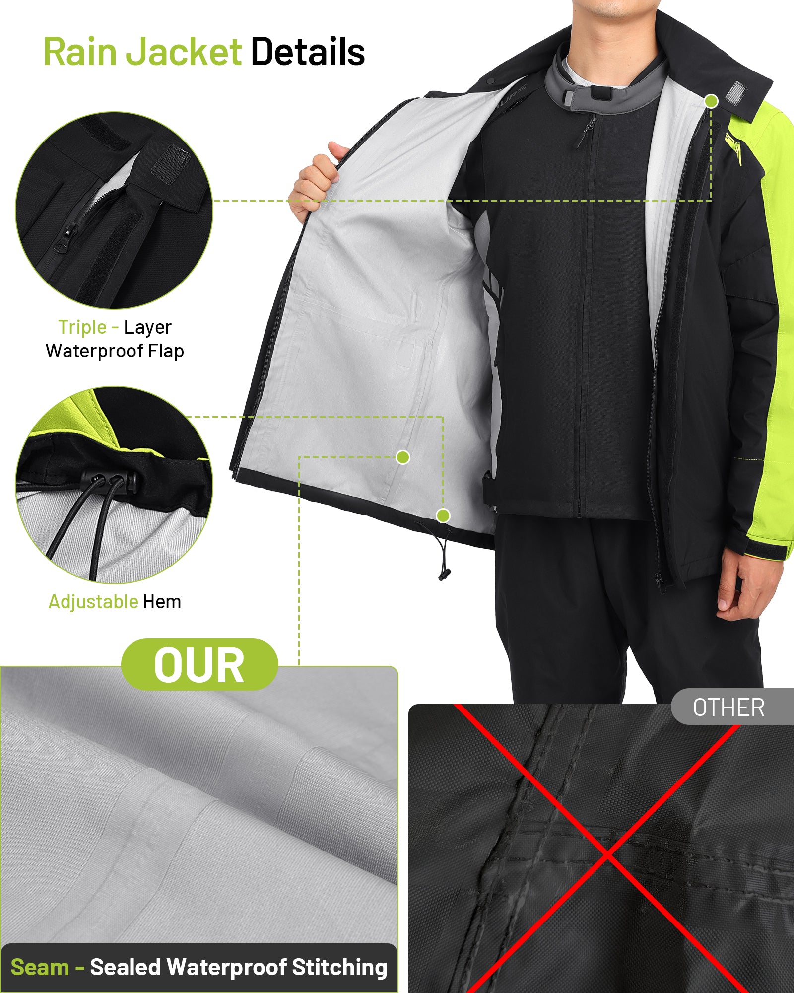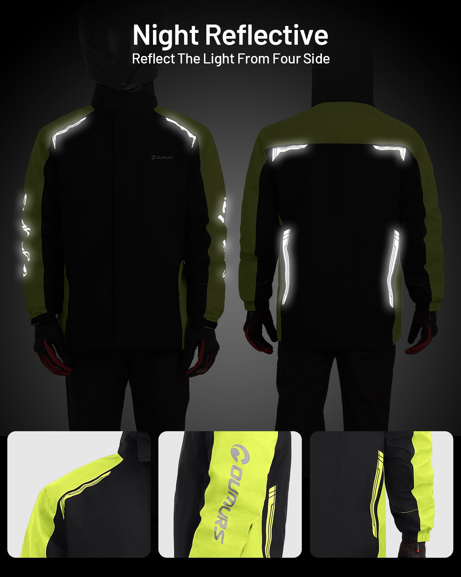 Motorcycle Rain Suit - Waterproof Jacket & Pants for Men & Women, Lightweight Nylon, Reflective, Multi-purpose for Riding, Fishing, Golf, Hunting, Camping