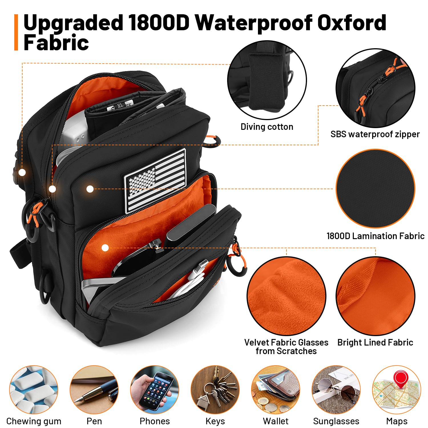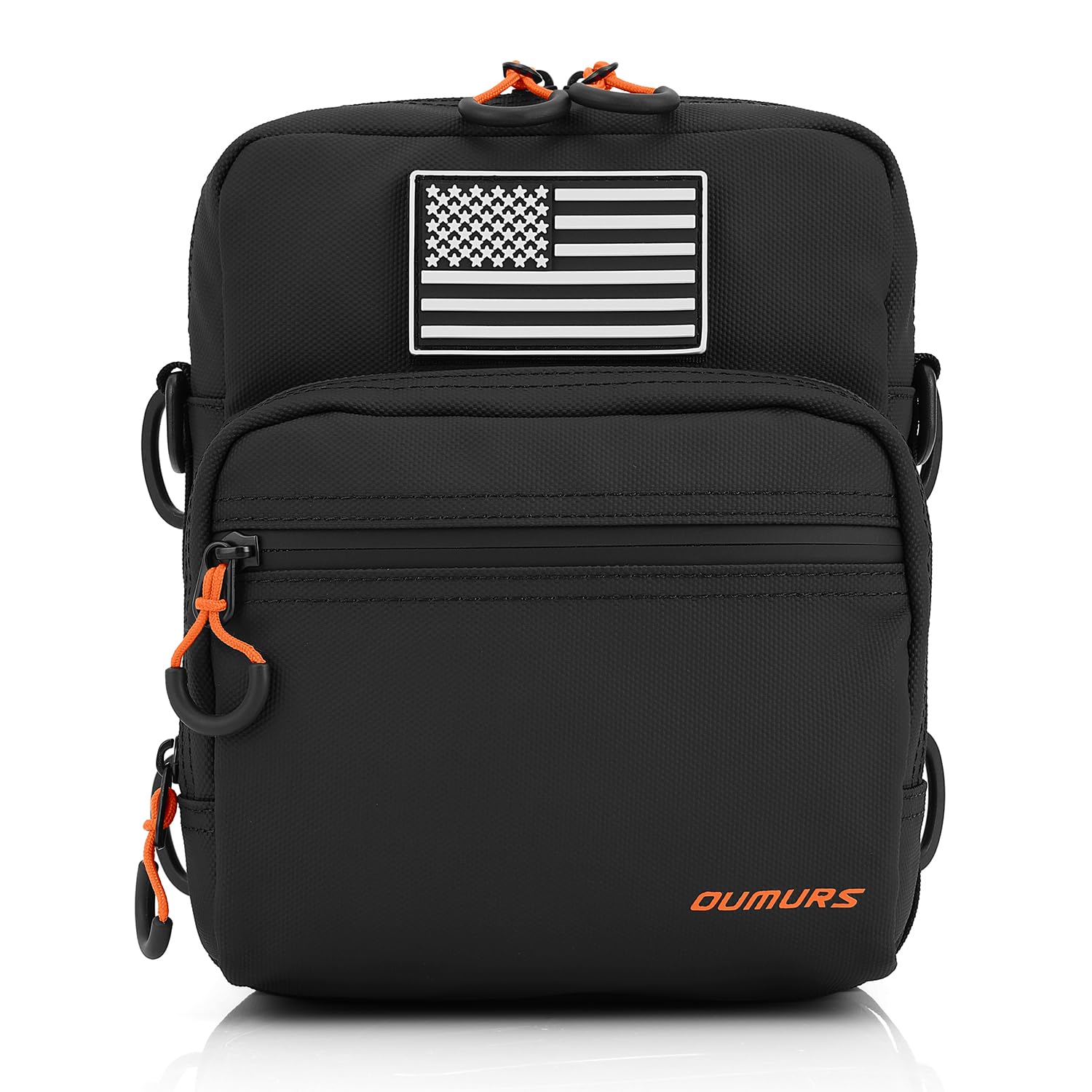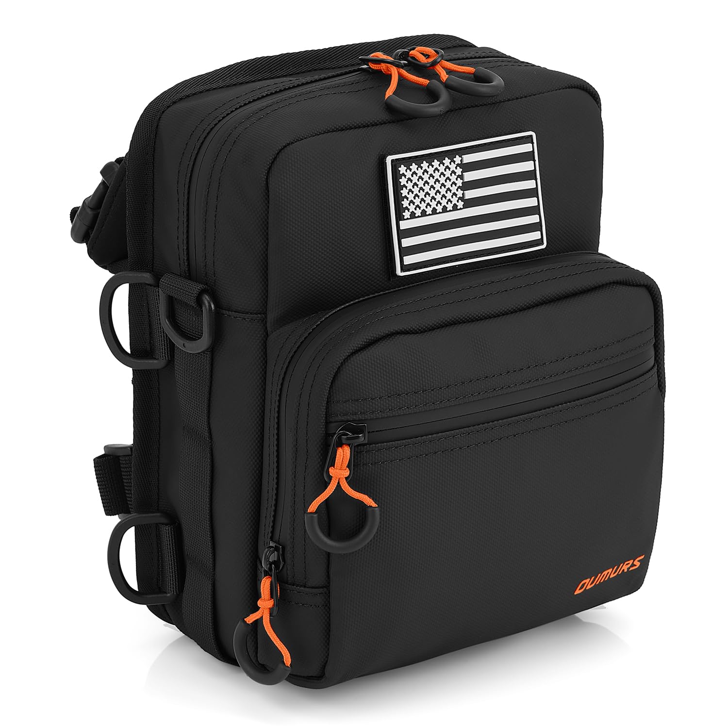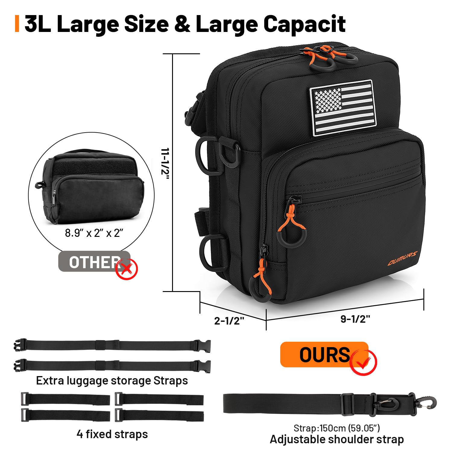 5, large size, the size is larger than other products on the market, you can easily store all small items, such as mobile phones, headphones, keys, wallets, gloves, keys, goggles, snacks, etc. Detachable American flag stickers give you a unique personality at all times.