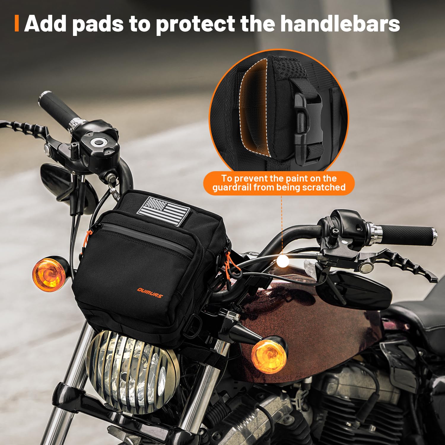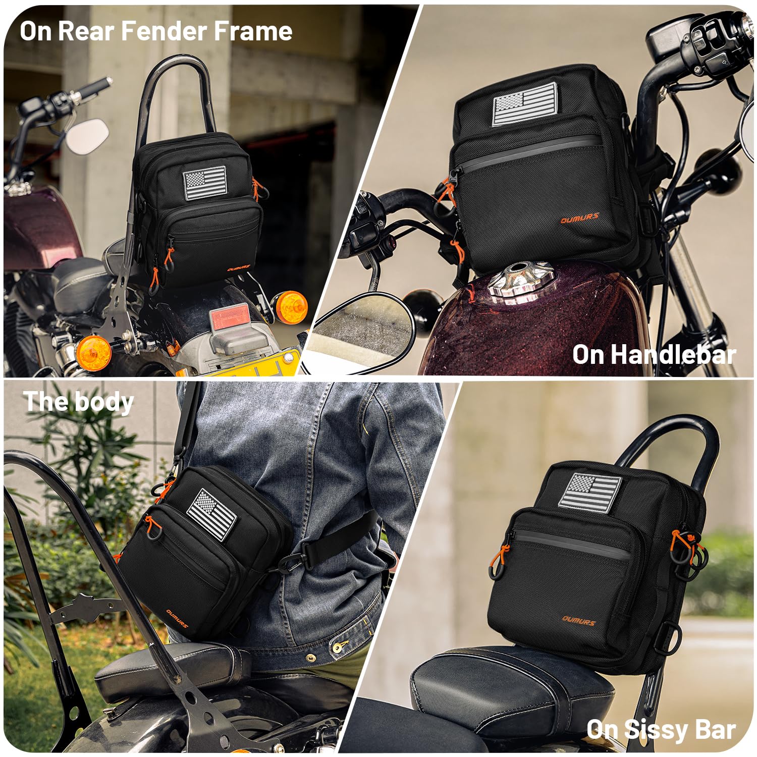 Oumurs Motorcycle Handlebar Bags,1800D Water-resistant Universal Bar bag American Flag Sissy Bar Bag