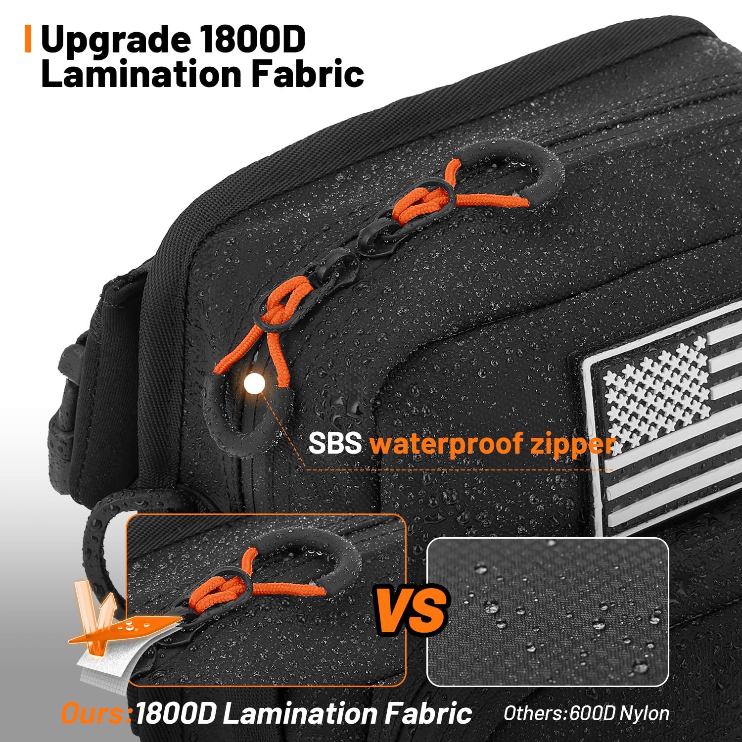 2. This handlebar bag is made of waterproof 1800D Oxford cloth/coated film waterproof Oxford cloth, which is better than 600d, 800d and 1000d materials on the market, which is not only waterproof but also resistant to deformation and fast fading. External waterproof zipper can easily prevent water and dust from entering.