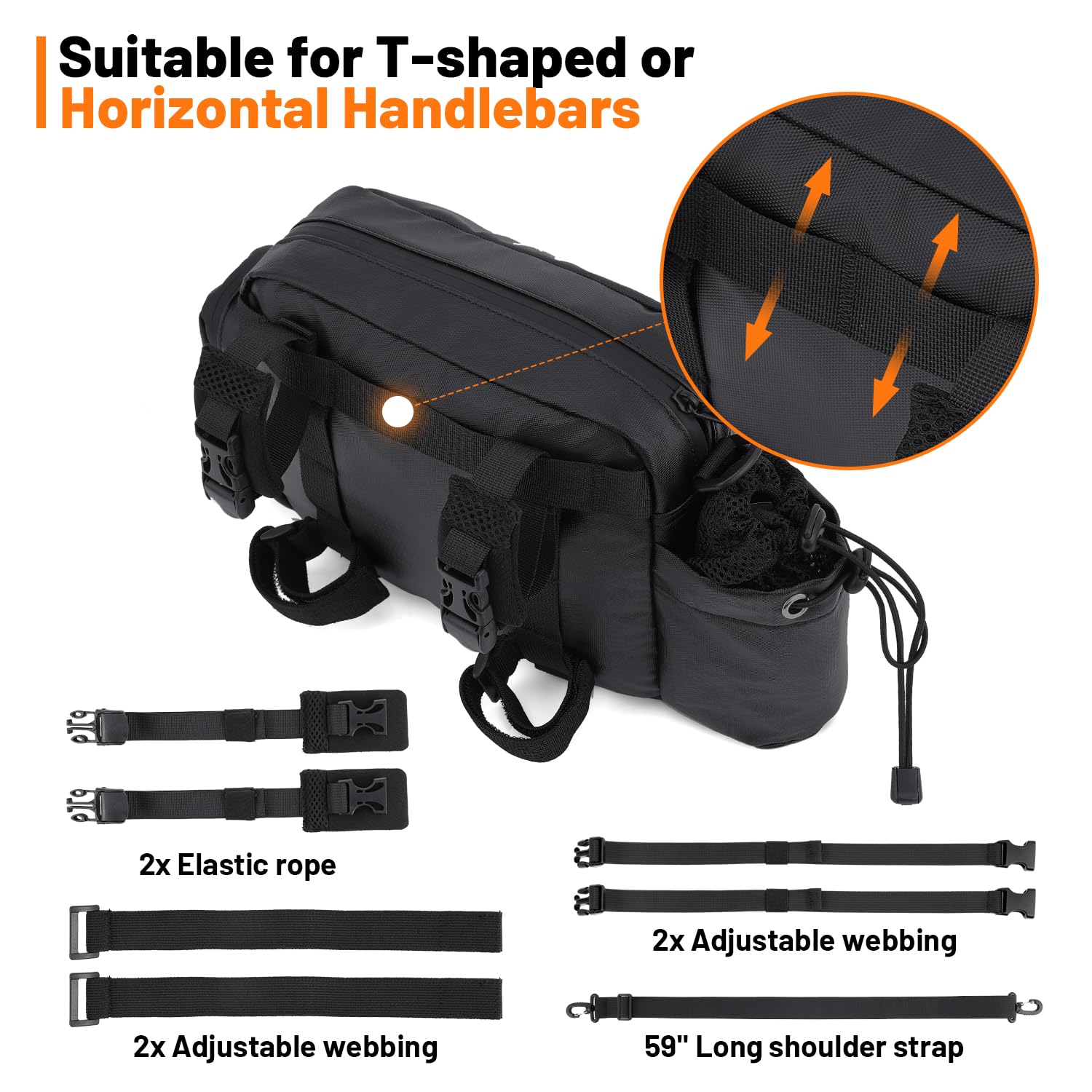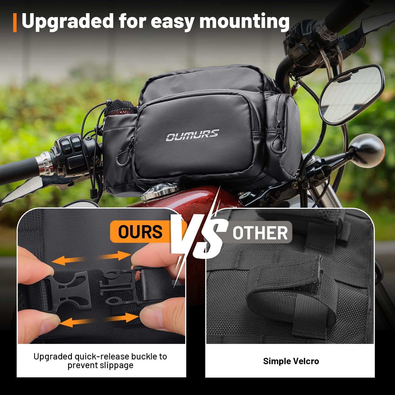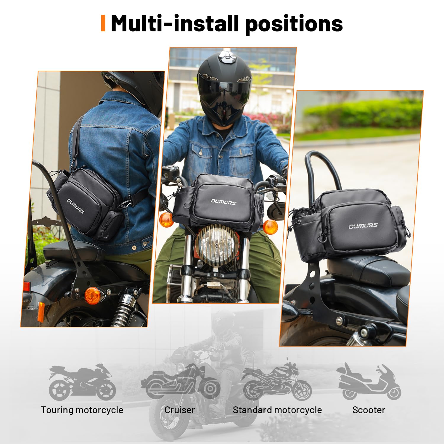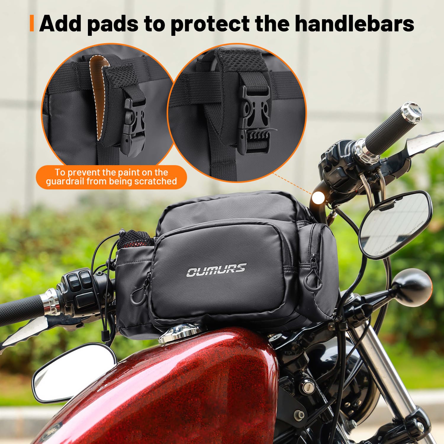 OUMURS Universal Motorcycle Handlebar Bag Water-resistant Sissy Bar Bag Reflective Bar Bag