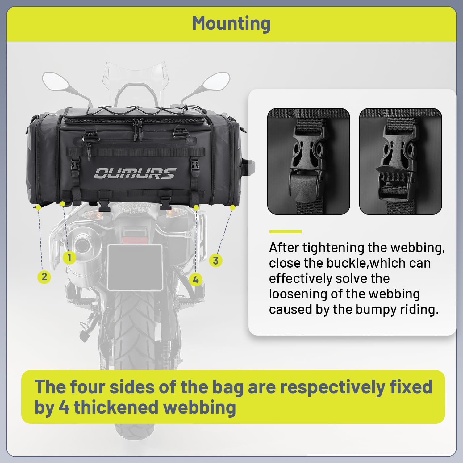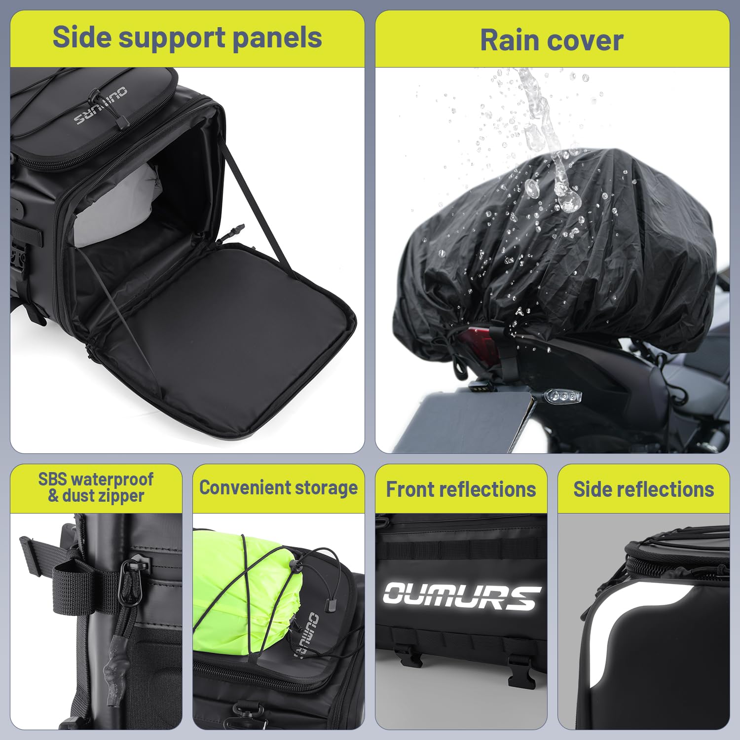 OUMURS Waterproof Motorcycle tail Bag With Rain Cover,45-60L Expandable Large Capacity